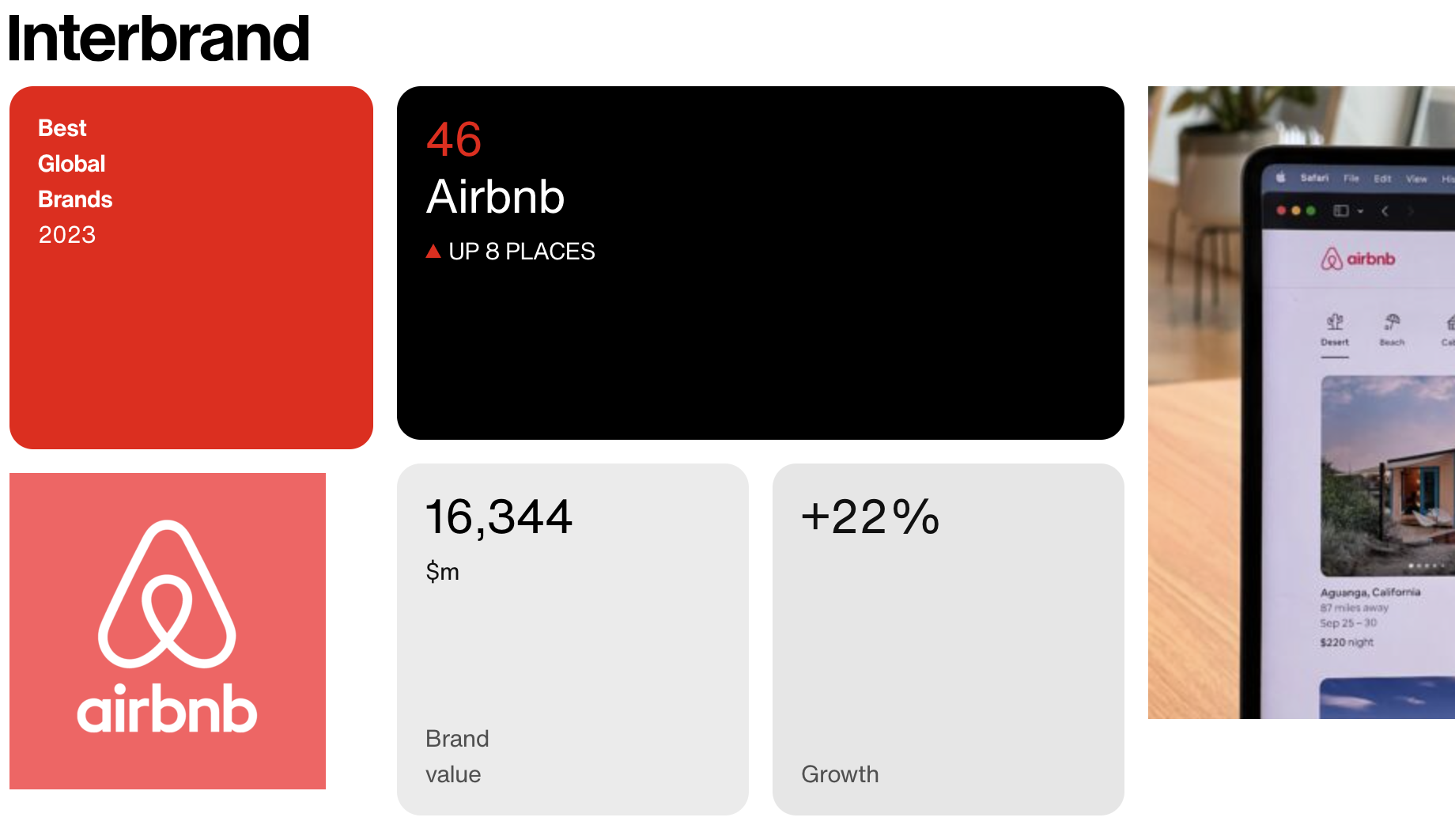 Contributed to Airbnb becoming Interbrand’s Fastest Growing Brand in 2023, jumping 8 places and 22% global brand value.