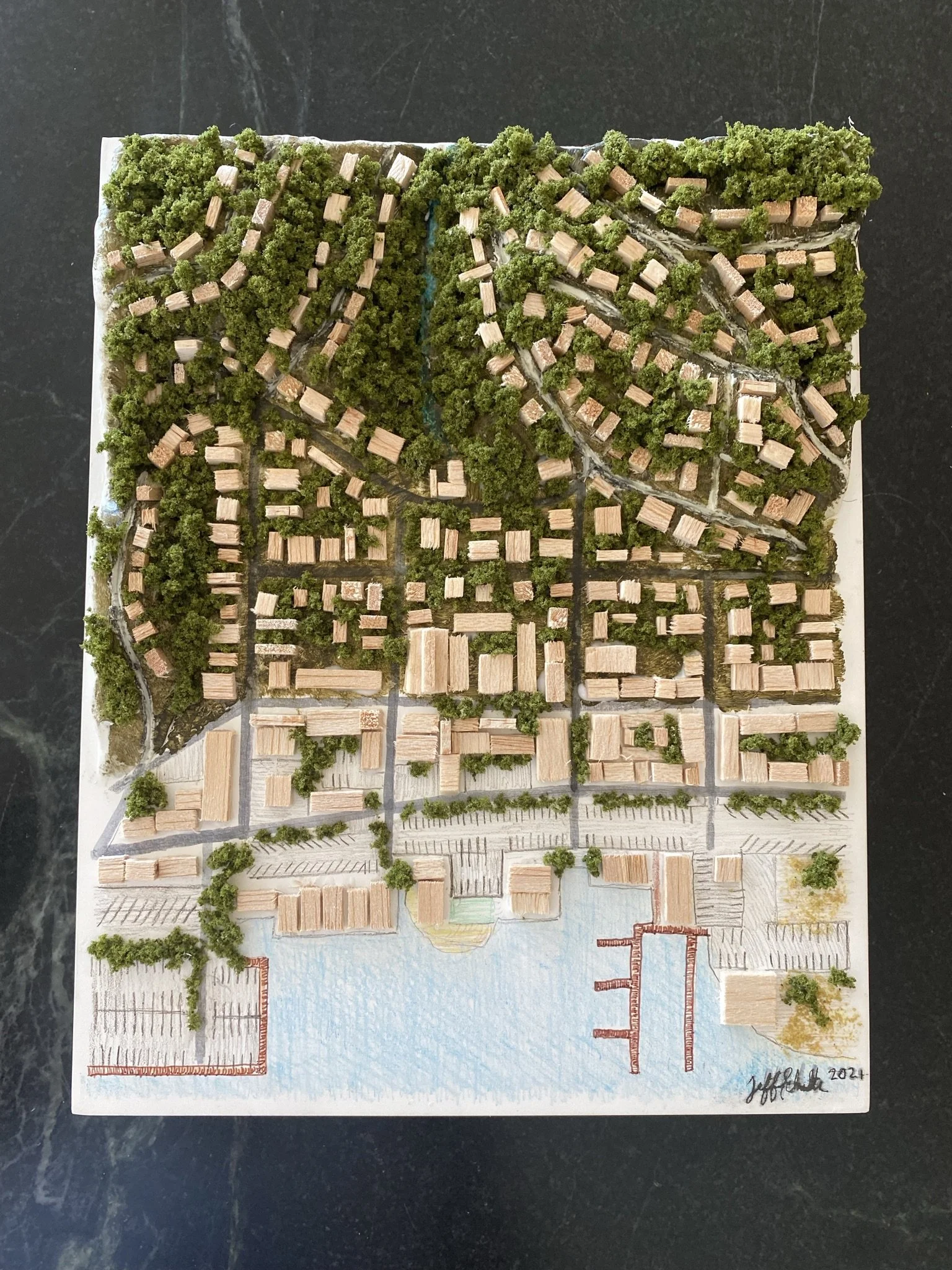I craft imaginary cities from wood and clay. Making a city is a meditative art for me, and marries up my knack for organizing chaos with my love of the urban landscape. Whenever I visit a new city I get inspired to craft new mapping projects.